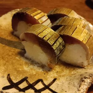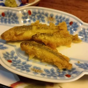 天麩羅、ブリの炭火焼き、和え物、鯖寿司など沢山の料理が出ました。